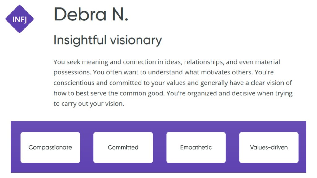 INFJ is an abbreviation used in the publications of the Myers-Briggs Type Indicator to refer to one of the sixteen personality types. INFJs are referred to as the Counselors and are among the rarest of personality types, accounting for 1–2% of the population.